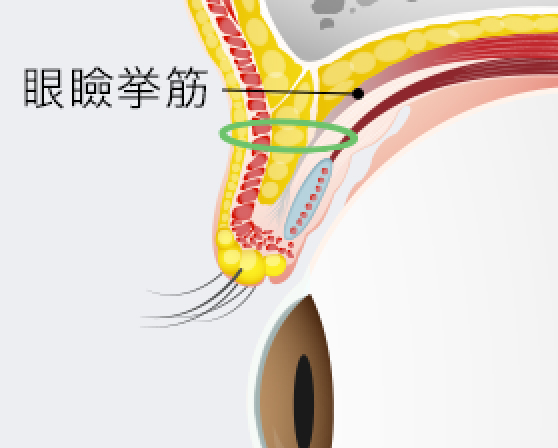 デザインした切開線に沿ってメスを入れ、皮膚と眼輪筋を切除します。
