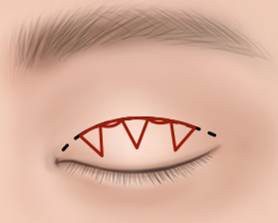 デザインしたラインに沿ってメスを入れ、皮膚を切開して強固な二重ラインを作り上げる二重整形の方法です。