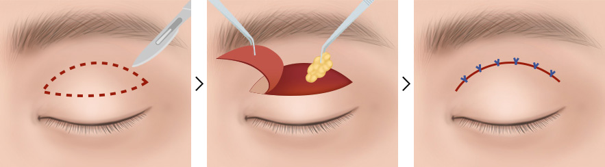 まぶたが厚い場合など、必要に応じて眼窩脂肪も切除します。